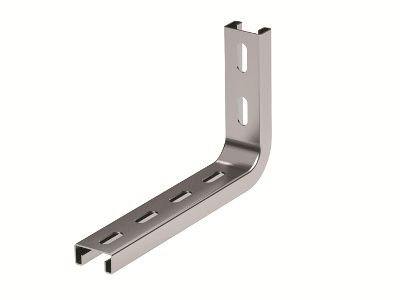 Применяется для монтажа трассы лотков с малой нагрузкой. Крепление к стене. Сталь толщиной 2,5 мм. 2 отверстия в основании. Предназначена для лотков шириной 200 мм.